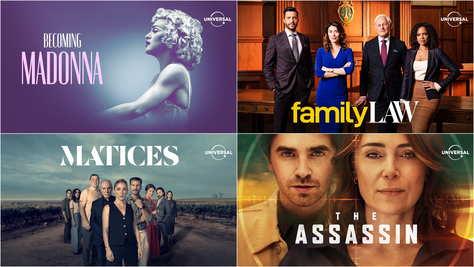 The Assassin, un nuevo thriller con altas dosis de comedia negra que te mantendrá al borde del asiento; Matices, la nueva mini-serie española sobre un intrincado caso policial; un imperdible documental sobre el ascenso a la fama de Madonna, y la cuarta temporada del atrapante drama legal canadiense Family Law, son sólo algunas de las producciones imperdibles que se podrán encontrar en exclusiva en Latinoamérica en Universal+.