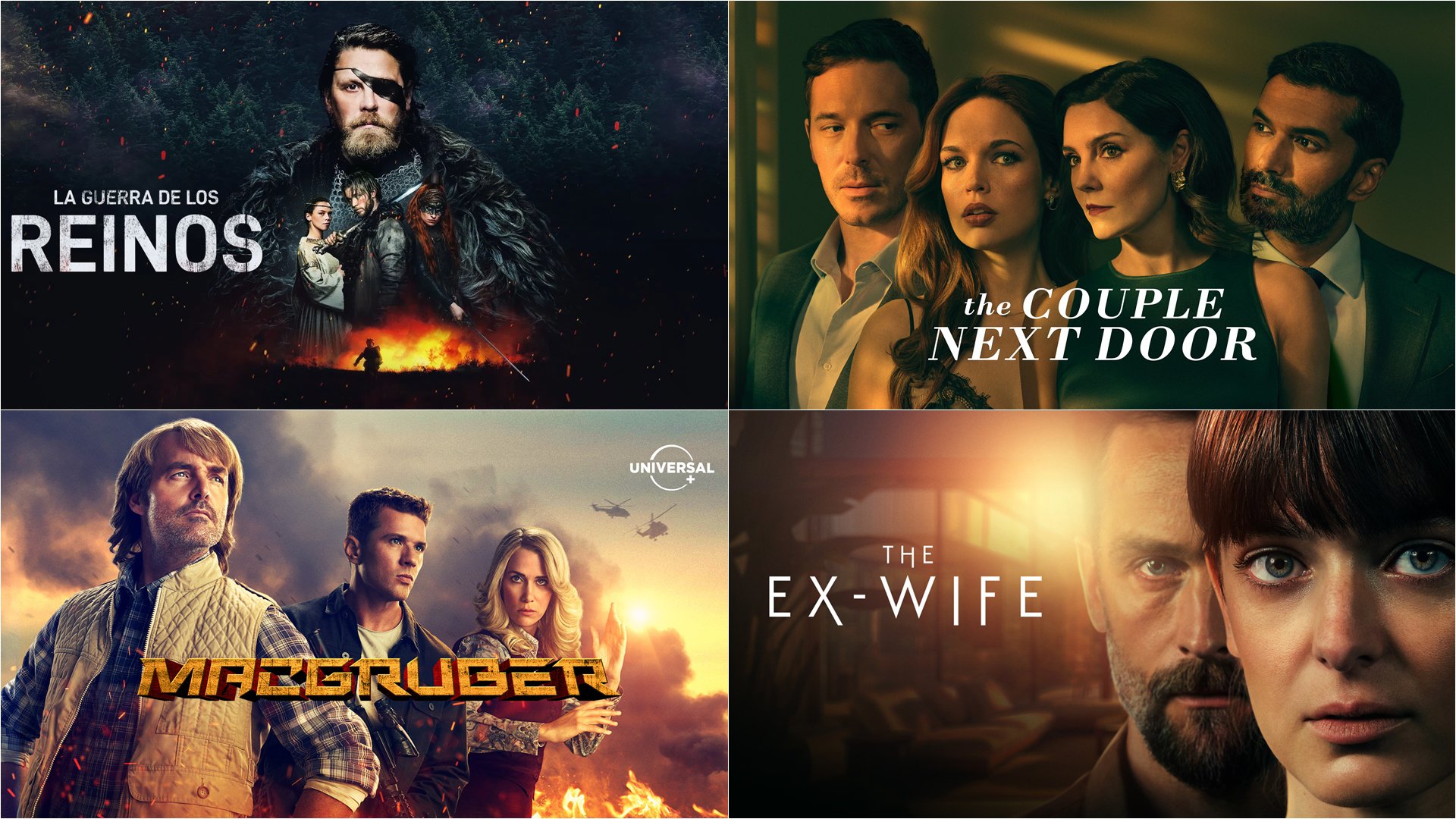 Este mes arriba la imponente épica nueva serie War of the Kingdoms, un espectáculo visual lleno de aventuras y personajes fascinantes; además, la divertida serie comedia MacGruber desembarca con su primera temporada, The Ex-Wife regresa con la segunda entrega de su atrapante historia, y The Couple Next Door vuelve con una nueva historia seductora y atrapante.